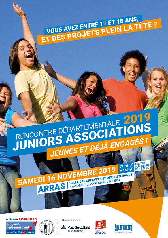 La Ligue de l’enseignement du Pas-de-Calais organisera la « Rencontre Départementale Juniors Associations – Jeunes et déjà engagés » en partenariat avec la Ville d’Arras et le Département du Pas-de-Calais le 16 novembre 2019 à Arras, salle des Orfèvres et Tisserands.